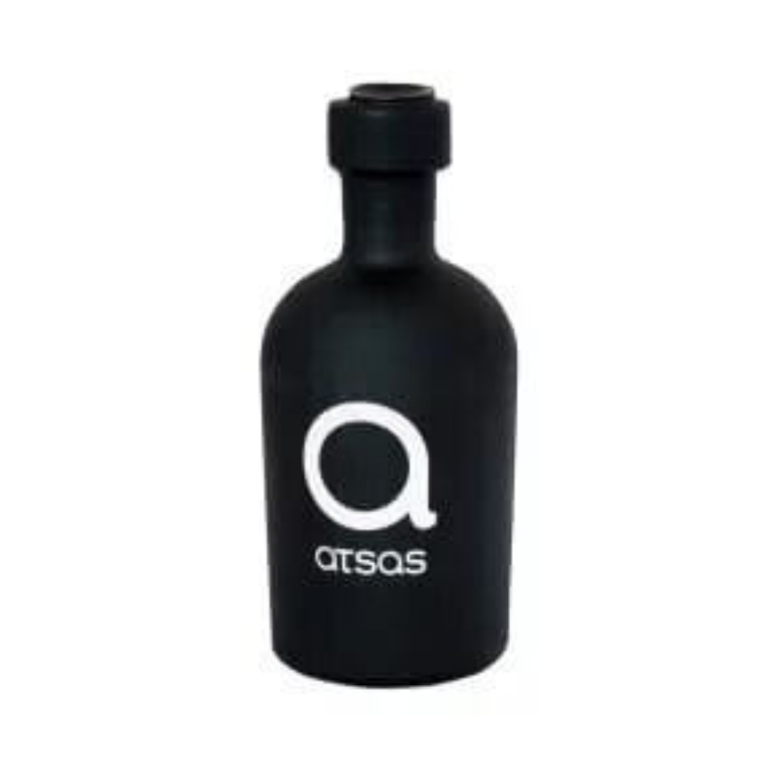 Atsas Olive Oil is packaged in a black opaque glass bottle to protect its delicate compounds.