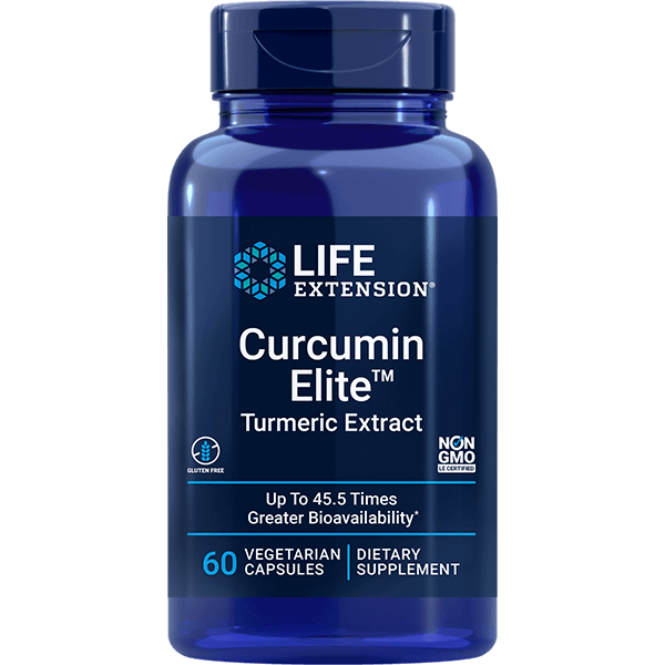 Curcumin Elite™ combines curcumin with galactomannans, a type of fiber from fenugreek seeds, to inhibit conjugation. As a result, clinical data shows 45.5 times higher bioavailability and broader tissue distribution of free curcuminoids than unformulated curcumin.