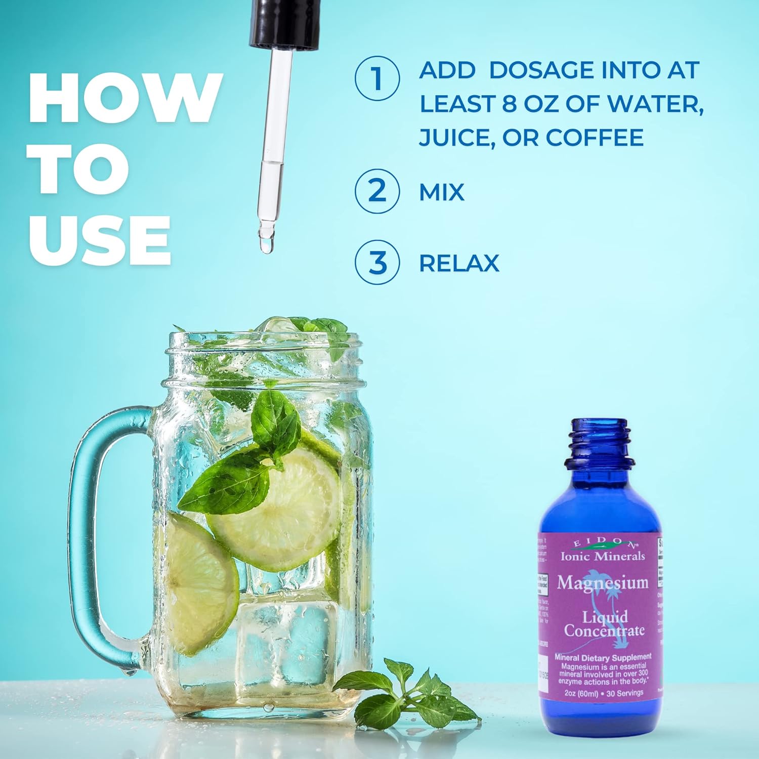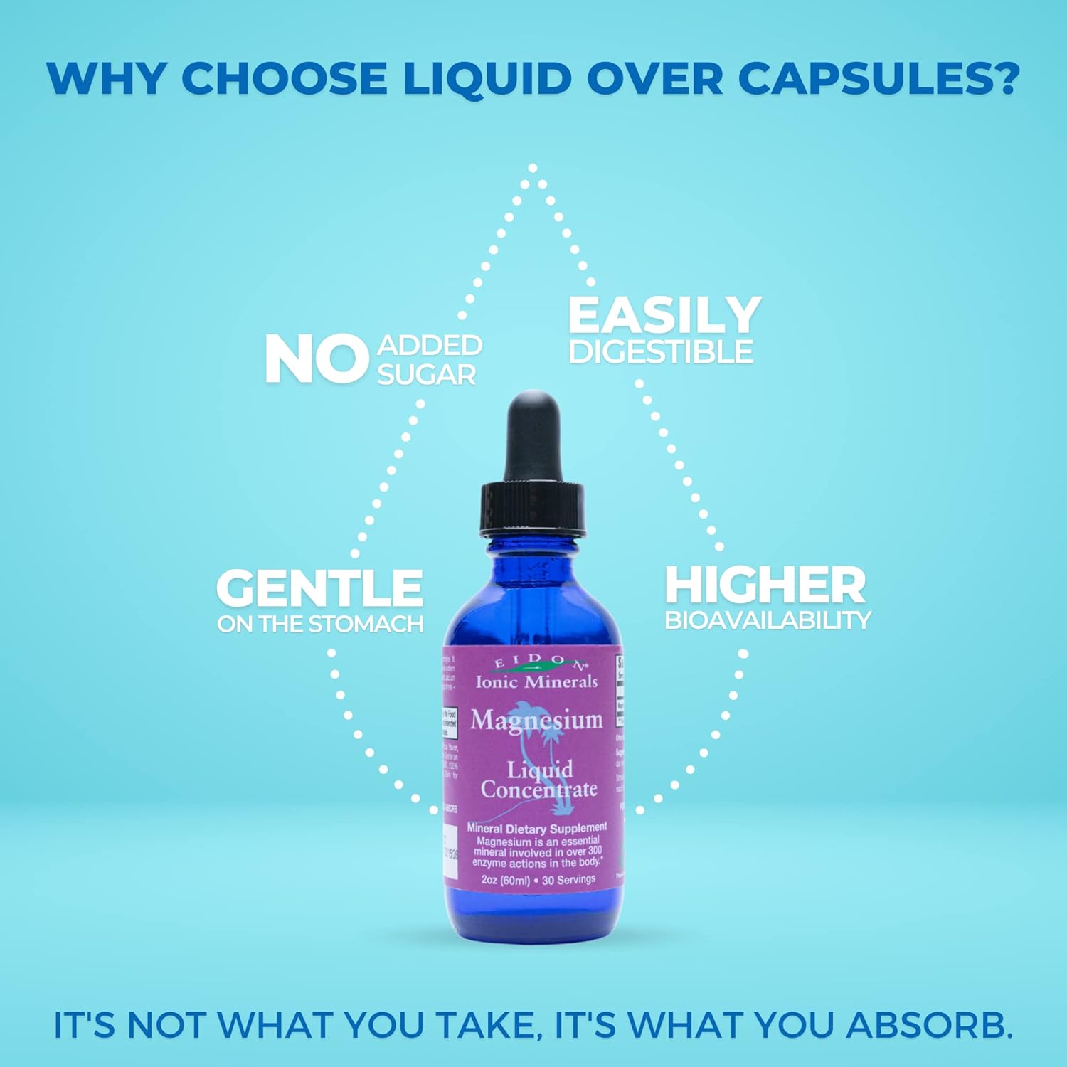 Eidon Ionic Magnesium Liquid Concentrate supports muscles and nerves.