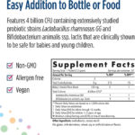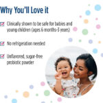 This probiotic powder is tasteless and odorless, making it easy to mix with food or liquids. Whether you add it to breast milk, formula, or soft foods, your child won’t notice a difference in taste. As a result, even picky eaters will benefit from its health-boosting properties. Explore more tips for picky eaters on KidsHealth.
