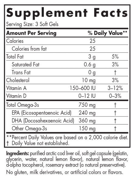 | Usage | Liquid: 1 teaspoon daily with food. Softgels: 3 per day with meals. Refrigerate liquid after opening. |