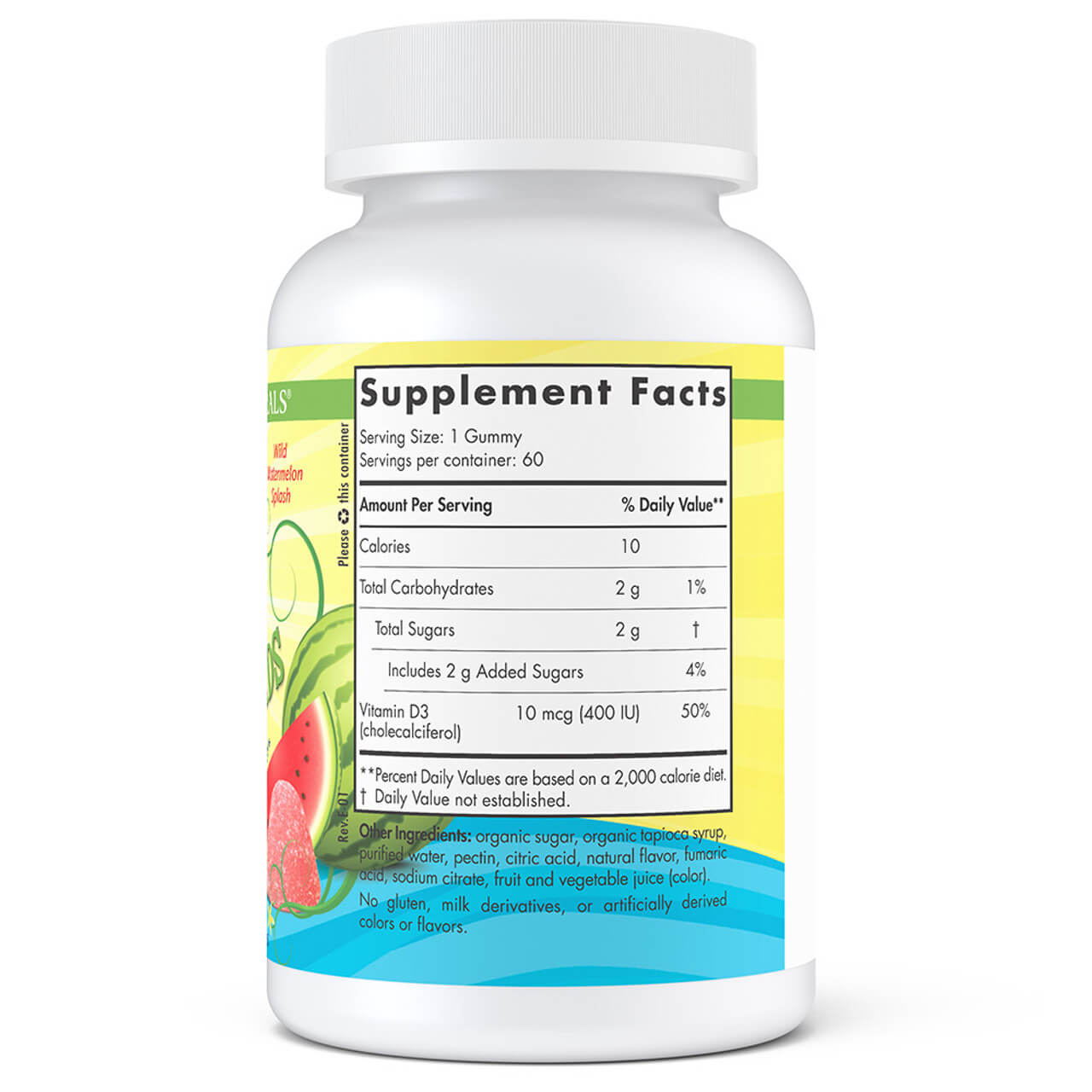 Vitamin D3 Gummies KIDS – Delicious wild watermelon flavor, 400 IU per gummy, gelatin-free and allergen-friendly to support strong bones & immune health.